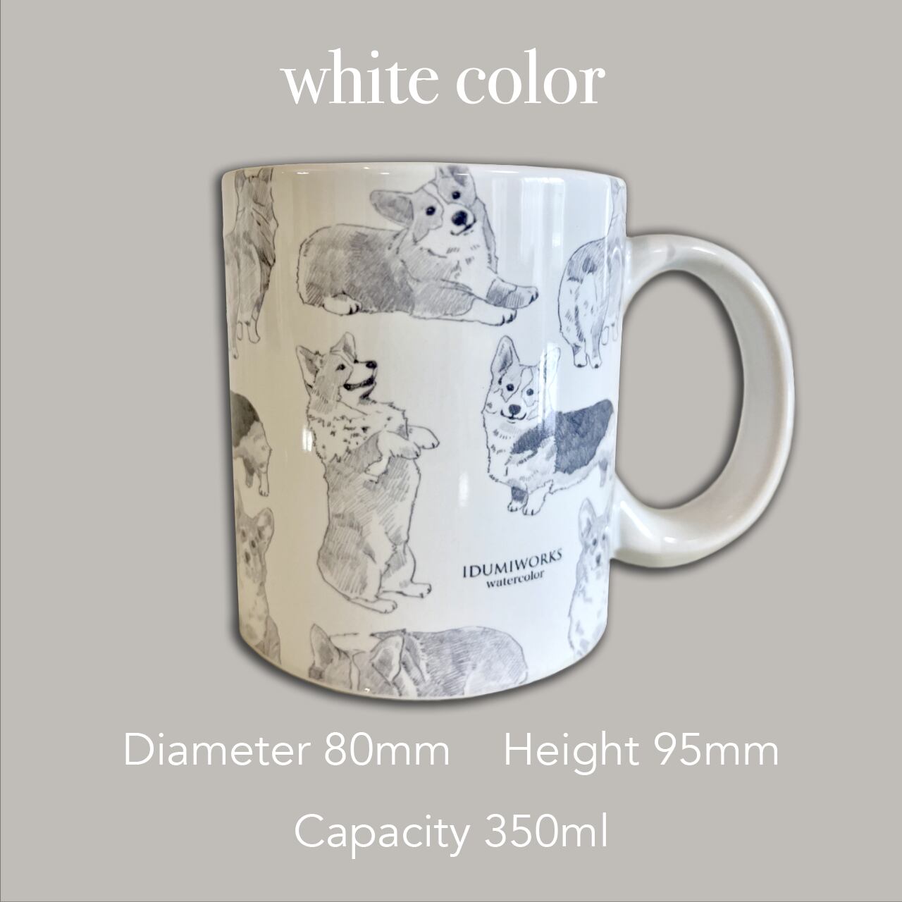 The white-colored body has a cute corgi illustration printed on it. Perfect for tea time. Also makes a great gift for friends and family.